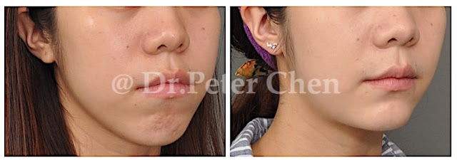 H 小姐即是一個例子。以前曾經為了前牙開咬做過矯正,剛矯正完時咬合正常,沒想到過一陣子前面門齒又咬不到,本來考慮再做一次矯正,後來聽矯正醫師說復發機率高,而且 H 小姐也想改善 正面臉型偏長 及下巴後縮的問題,經過 3D simulation,利用上下顎骨旋轉方式 ( Distal Segment Counter-Clockwise Rotation ) 將之前造成後牙干擾 ( Premature Contact ) 的因素移除,再搭配下巴成形術