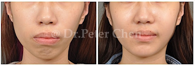 Mentalis Muscle (頦肌) 是下巴主要的肌肉,在下顎骨後縮及上顎突出的時候容易變得明顯,當這塊肌肉用力時,臉部表情會顯得嚴肅不易親近,所以女生尤其介意。