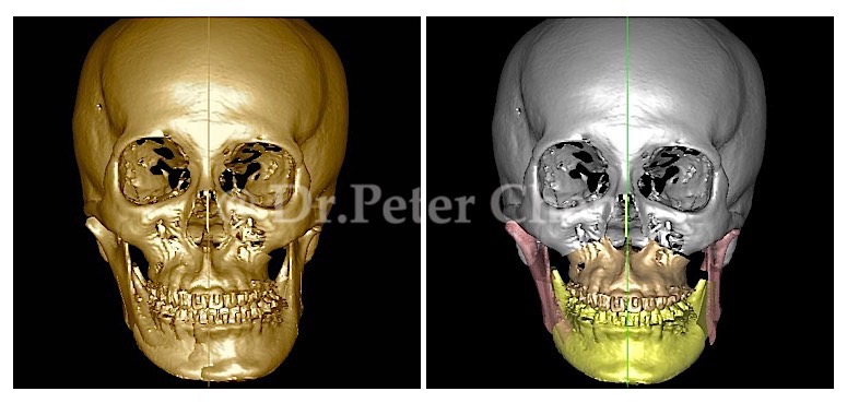 前幾天有個女學生來看我,想要接受正顎手術,她說幼稚園時期都正常,但從小學開始下巴就一直長,而且好像右邊長比較快,漸漸的下巴就往左邊偏。