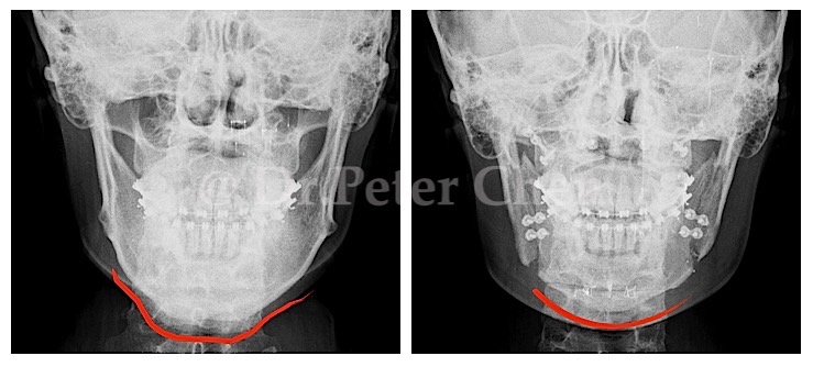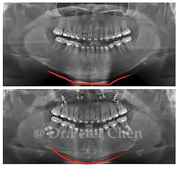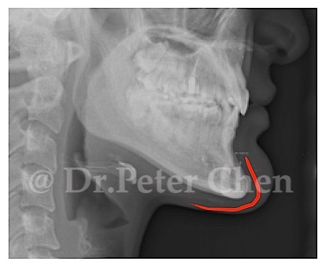 有些下顎骨突出的案例,從 X ray 上 會發現下顎骨前端(Menton)特別會突出一塊,